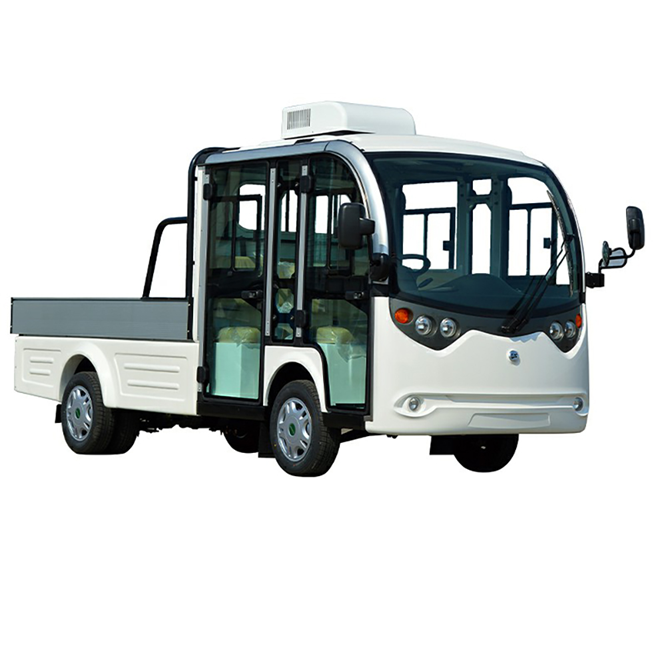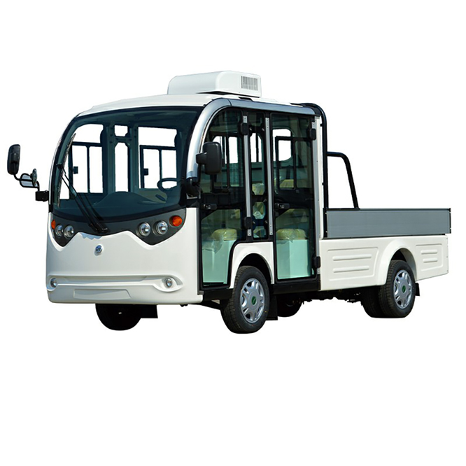 Vehicul utilitar 100% electric cu functiuni diverse. Are o bena generoasa si poate transporta 4 persoane.