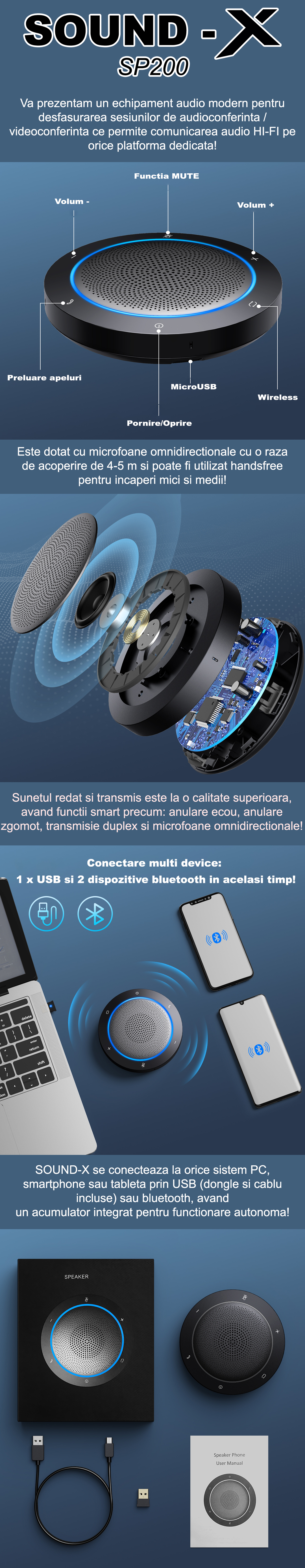 Functii: anulare zgomot, Handsfree, anulare ecou, transmisie duplex